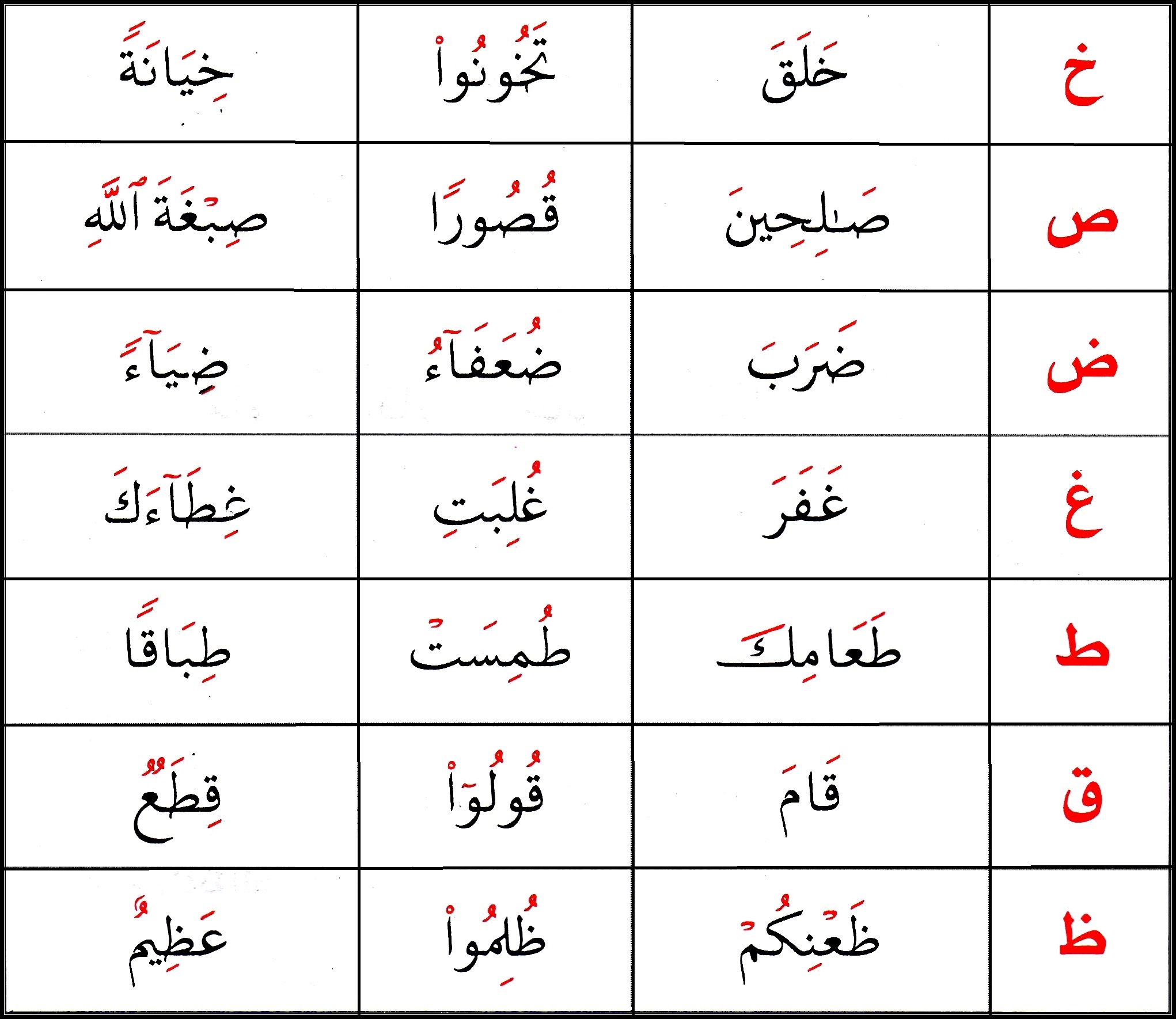 Full Mouth letters: ุฎ , ุต , ุถ , ุท , ุธ , ุบ , ู