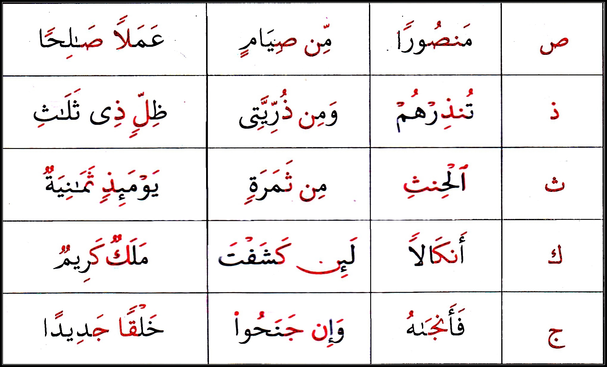 The rule: If after Nûn Sakinah "نْ"or Tanween "رجلٌ, رجلٍ ,رجلًا " [an, in, un sound] comes any of the Ith’har letters then it will be read clearly with no merging or sounds.
